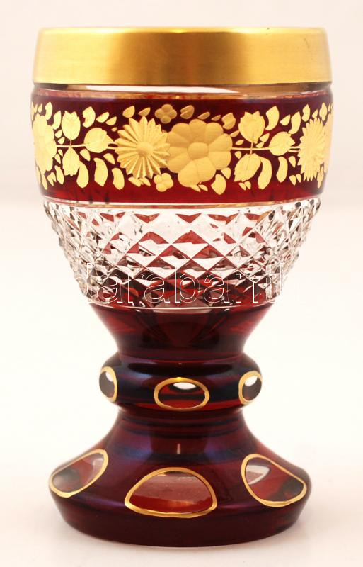 Talpas pohár, aranyozott, csiszolt, metszett, több rétegű, hibátlan, m...