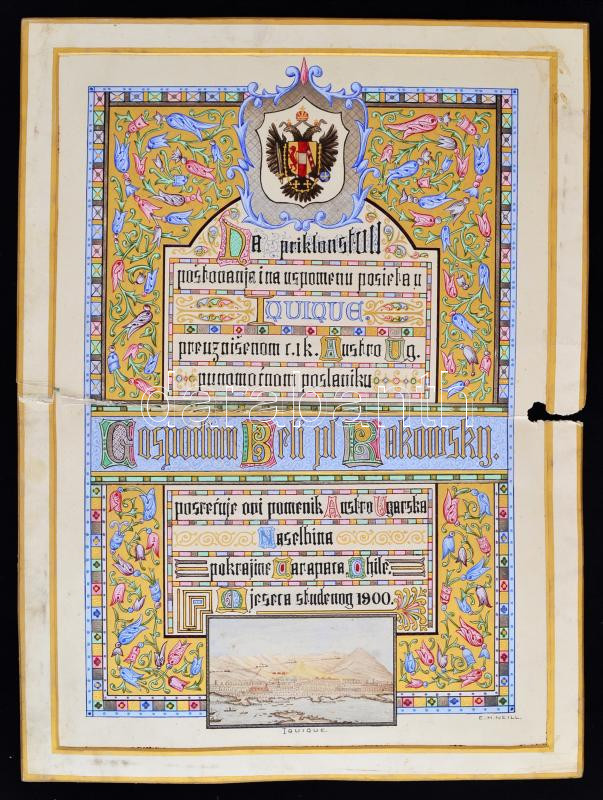 1900 Chile, Iquique város látképét tartalmazó, kézzel rajzolt emléklap... https://www.darabanth.com/en/264-Online-auction/264.0/Other-collectibles/Historical-documents-manuscripts~16/1900-Chile-Iquique-varos-latkepet-tartalmazo-kezzel-rajzolt-emleklap-horvat-nyelven-emle~II1320582