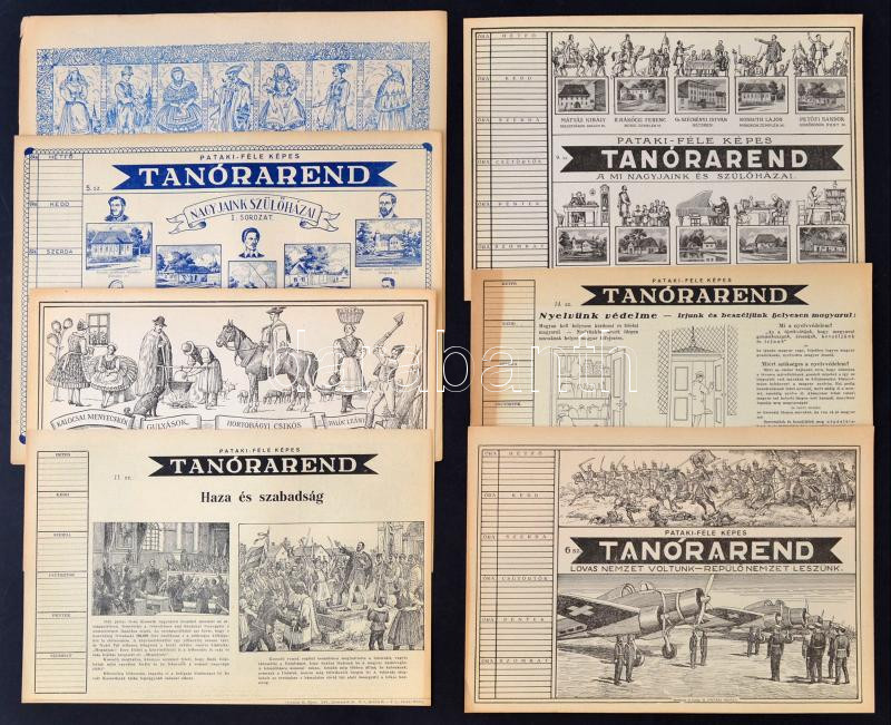 cca 1930 7 db különböző Pataki féle képes tanórarend, különféle propaganda és militária témákkal, mind jó állapotban.