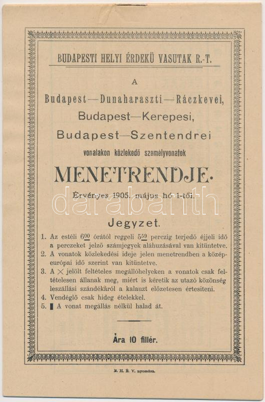 1905 Budapesti HÉV Rt. menetrendje a Budapest-Dunaharaszti-Ráckeve; Bu... https://www.darabanth.com/en/264-Online-auction/264.0/Other-collectibles/Printed-Materials~25/1905-Budapesti-HEV-Rt-menetrendje-a-Budapest-Dunaharaszti-Rackeve-Budapest-Kerepes-valamint-Bud~II1317450