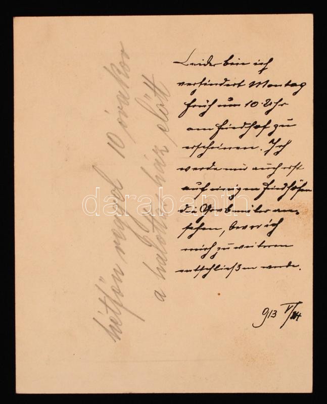 1913 Gerenday A. és fia akad. szobrászok reklámnyomtatványa, hátoldalán német, ill. magyar nyelvű feljegyzéssel. 12x15,5 cm.