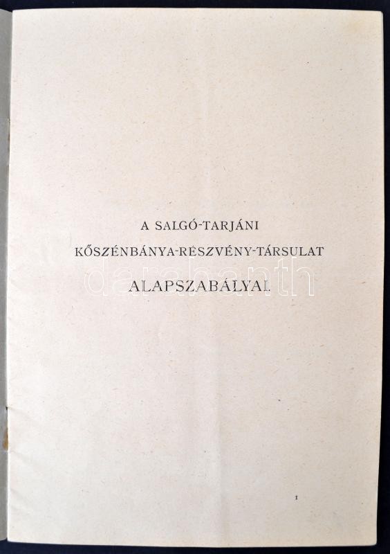 1923 A Salgó-Tarjáni Kőszénbánya Rt. Alapszabályai. Benne dr. Chorin F...
