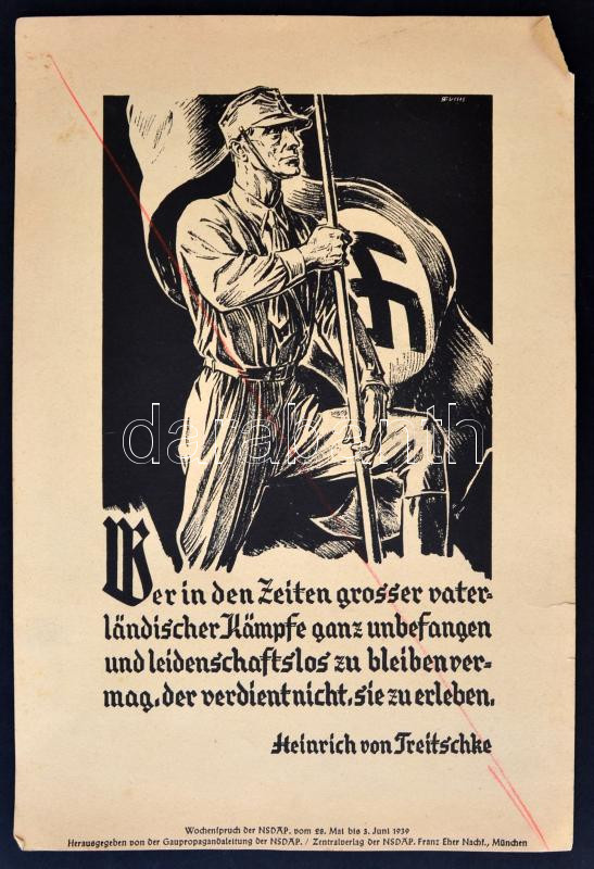 1939 AZ NSDAP heti mottója: Heinrich von Freitschkétől származó idézet... https://www.darabanth.com/en/264-Online-auction/264.0/Other-collectibles/Printed-Materials~25/1939-AZ-NSDAP-heti-mottoja-Heinrich-von-Freitschketol-szarmazo-idezet-kisplakaton-A-nemet-~II1319536