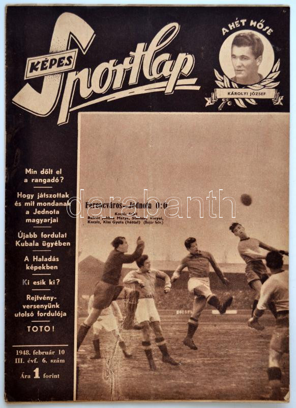 https://www.darabanth.com/en/264-Online-auction/264.0/Other-collectibles/Printed-Materials~25/1948-Kepes-Sportlap-III-evf-6-szam-Cimlapon-az-aktualis-FTC-Jednota-rangadorol-keszult-~II1315314