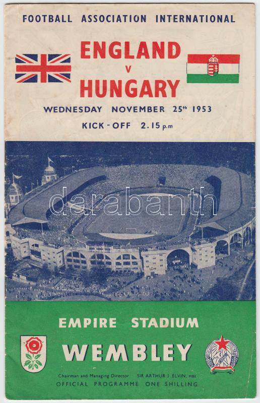 1953 Az évszázad mérkőzésnek hivatalos műsorfüzete. England vs Hungary... https://www.darabanth.com/en/264-Online-auction/264.0/Other-collectibles/Printed-Materials~25/1953-Az-evszazad-merkozesnek-hivatalos-musorfuzete-England-vs-Hungary-Wednesday-November-25~II1319551