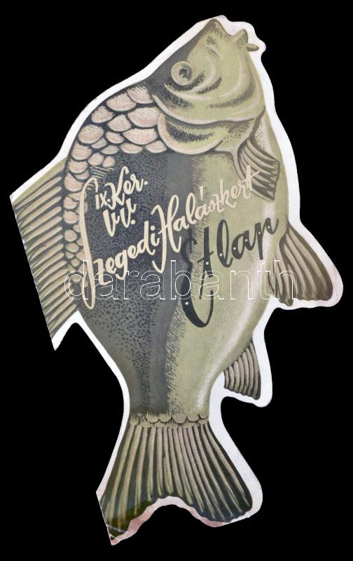 1958 A IX. kerület Szegedi Halászkert halformájú, kinyitható étlapja, ragasztott
