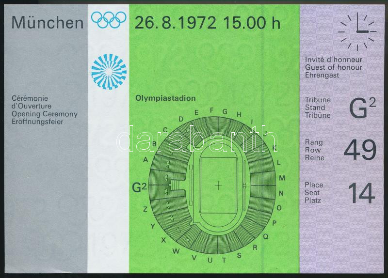 1972 München Olimpiai belépő a megnyitóünnepségre. Szép állapotban, 1... https://www.darabanth.com/en/264-Online-auction/264.0/Other-collectibles/Printed-Materials~25/1972-Munchen-Olimpiai-belepo-a-megnyitounnepsegre-Szep-allapotban--10-5x15cm1972-Munich-O~II1239146