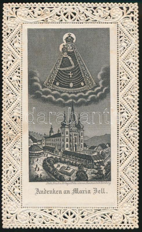 cca 1880 Máriazelli csipke szentkép, 9x6cm