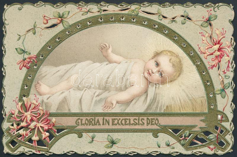 cca 1900-20 Litho csipkeszentkép szép állapotban, 7x10cm