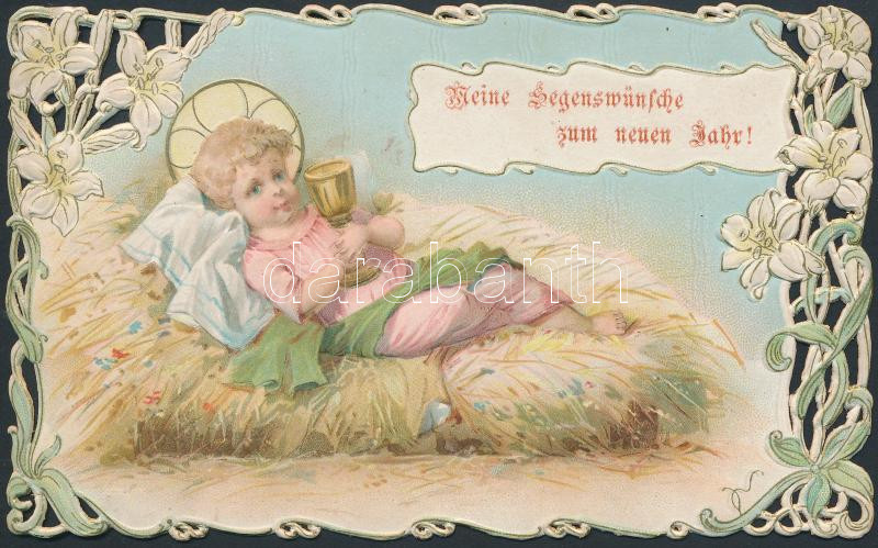 cca 1900-20 Litho csipkeszentkép szép állapotban, 7x11cm