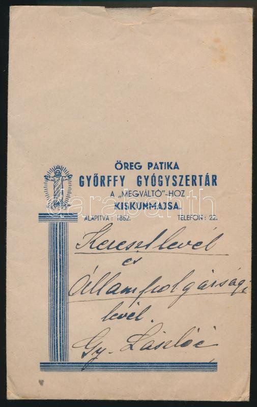https://www.darabanth.com/en/264-Online-auction/264.0/Other-collectibles/Printed-Materials~25/cca-1920-30-Oreg-Patika-Gyorffy-Gyogyszertar-Kiskunmajsa-boritek-18x11cm~II1319874