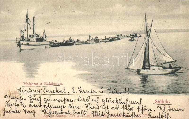 Siófok, Halászat a Balatonon, kiadja Ellinger Ede