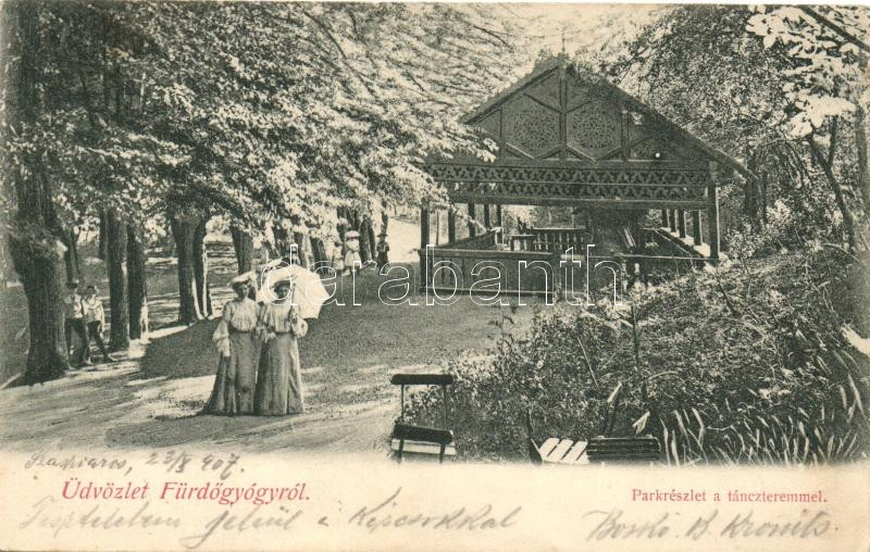 Fürdőgyógy, Feredőgyógy; Parkrészlet a táncteremmel / park detail with...