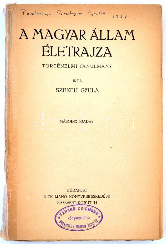 Szekfű Gyula: A magyar állam életrajza. Történelmi tanulmány. 2. kiadá... https://www.darabanth.com/en/265-Online-auction/265.0/Books/Books-History~200299/Szekfu-Gyula-A-magyar-allam-eletrajza-Tortenelmi-tanulmany-2-kiadas-Bp-1923-Dick-ManC3~II1290683