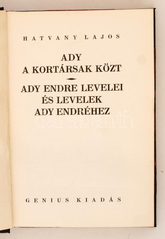 https://www.darabanth.com/en/265-Online-auction/265.0/Books/Books-Other-rarities~500002/Hatvany-Lajos-Ady-a-kortarsak-kozt--Ady-Endre-levelei-es-levelek-Ady-Endrehez-Bp-1927-Gen~II1324424