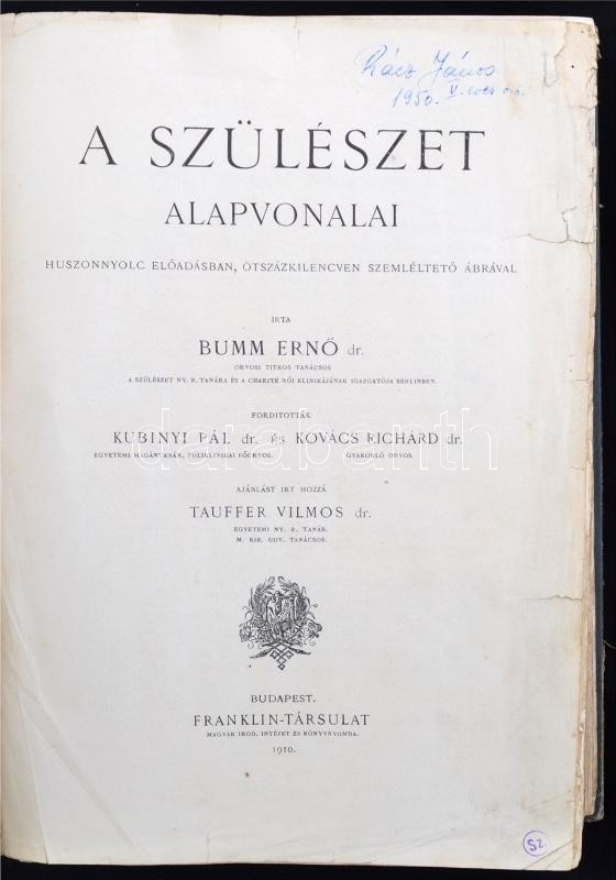 Bumm Ernő: A szülészet alapvonalai. Huszonnyolc előadásban, ötszázkile... https://www.darabanth.com/en/265-Online-auction/265.0/Books/Books-Science-and-technology~200304/Bumm-Erno-A-szuleszet-alapvonalai-Huszonnyolc-eloadasban-otszazkilencven-szemlelteto-ab~II1288414