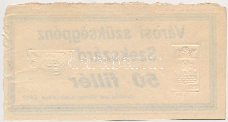 Szekszárd 1918. 50f "Városi szükségpénz" szárazpecséttel T:II