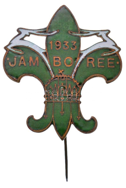 1933. "Jamboree" zöld-fehér zománcozott cserkész jelvény (36x32mm) T:2