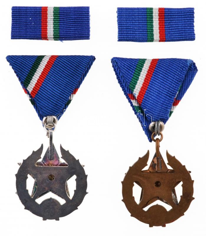 1951. "Közbiztonsági Érem" bronz és ezüst fokozata a rendőrség tagjai részére, zománcozott Br kitüntetés mellszalagon, miniatűrrel tokban T:2