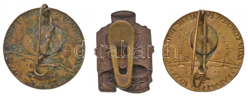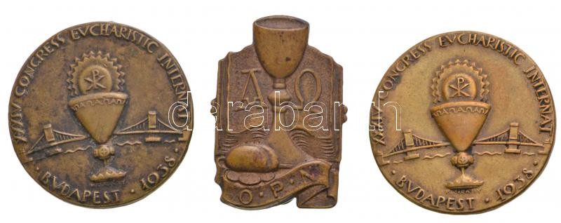 Madarassy Walter (1909-1994) 1938. "XXXIV. Nemzetközi Eucharisztikus Kongresszus Budapest" 2db Br jelvény, "LUDVIG BP. TÖRV. VÉD." gyártói jelzéssel (22,5mm) + "O.P.N." Br gomblyukjelvény (22,5x11mm) T:2 egyiken a tű elhajlott