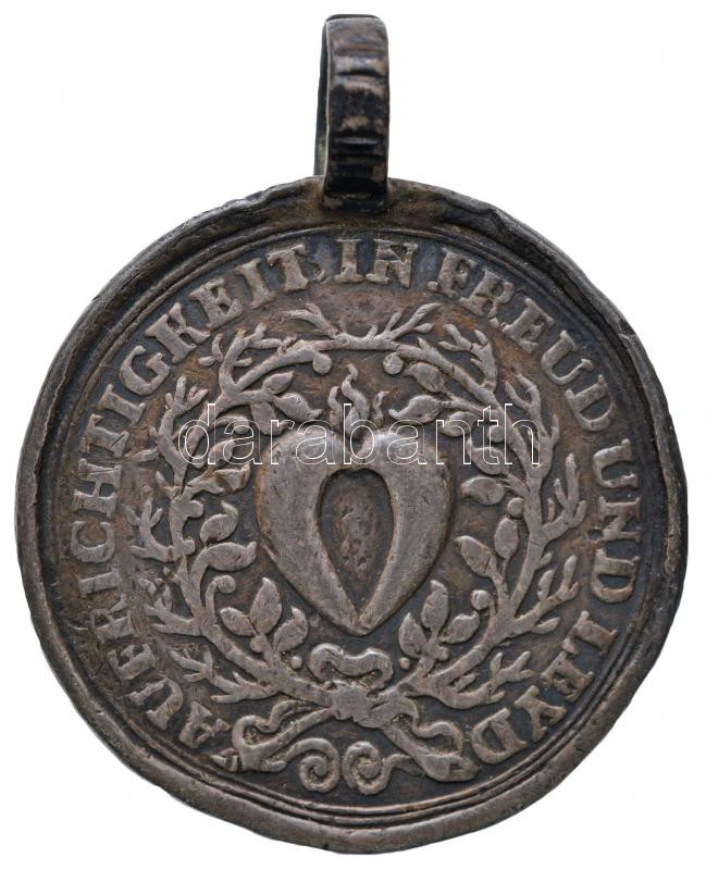 Német Államok / Nürnberg ~1675. Jelzetlen Ag szerelmi medál füllel (15,72g/30,5mm) T:2-,3 ph. German States / Nürnberg ~1675. Ag medal of love with ear, without hallmark. "AVFRICHTIGKEIT IN FREUD UND LEYD / EINMAHL 1 NIEMAHL 2 ALLZEIT 3 (15,72g/30,5mm) C:VF,F edge errors