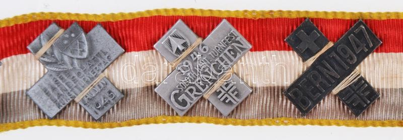 Svájc ~1930-1940. 27db-os, főleg sport témájú jelvény tétel szalagon T:2,2- Switzerland ~1930-1940. 27pcs of mainly sport badges on ribbon C:XF,VF