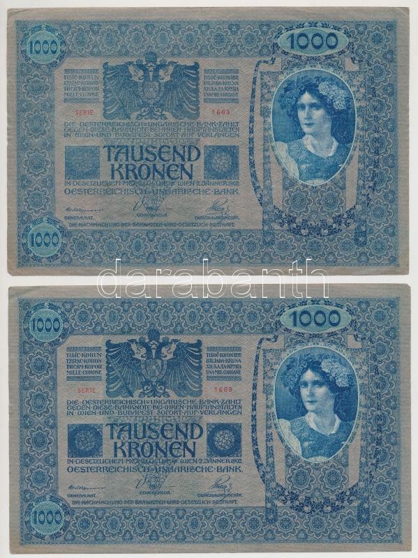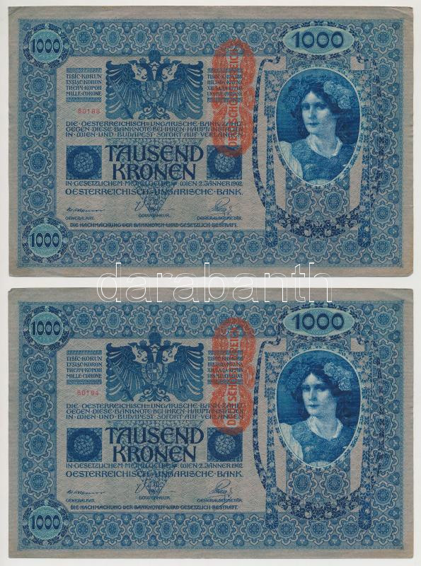 1902. 1000K (3x) mindkét oldal német, "Deutschösterreich" fe...