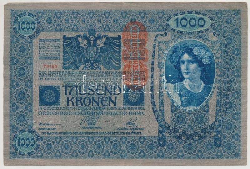 https://www.darabanth.com/en/265-Online-auction/265.0/Numismatics/Hungarian-Banknotes~400007/1902-1000K-3x-mindket-oldal-nemet-Deutschosterreich-felulnyomassal-TIII~II1324378