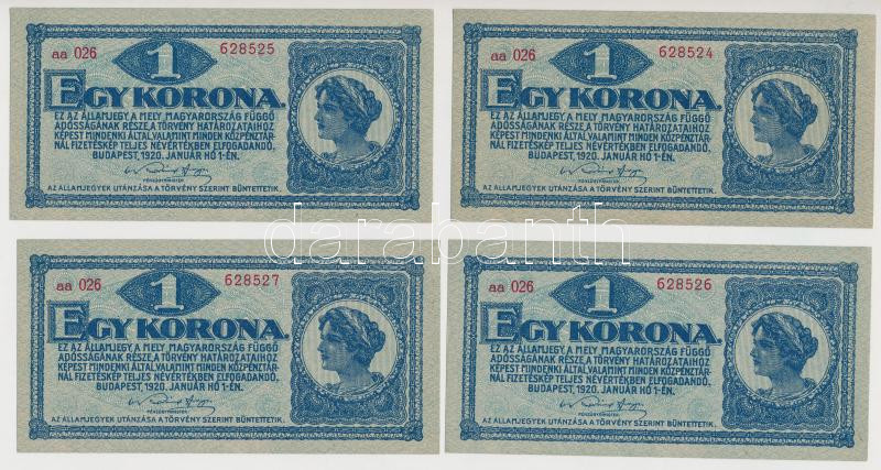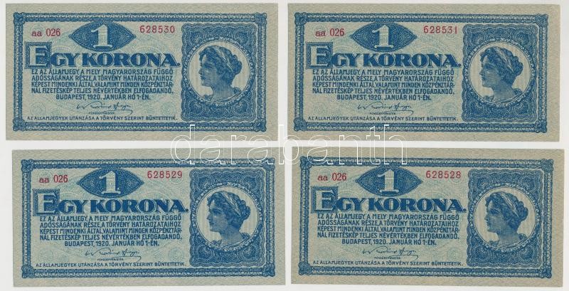 https://www.darabanth.com/en/265-Online-auction/265.0/Numismatics/Hungarian-Banknotes~400007/1920-1K-8x-sorszamkovetok-sotetvoros-sorszammal-TI-I-II~II1324284