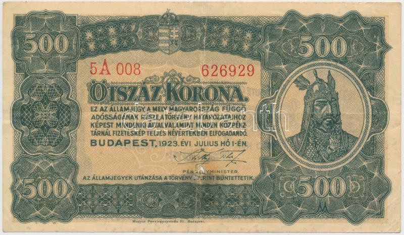 https://www.darabanth.com/en/265-Online-auction/265.0/Numismatics/Hungarian-Banknotes~400007/1923-500K-Magyar-Penzjegynyomda-Rt-Budapest-TIII-III-lyuk--Adamo-K34~II1327434