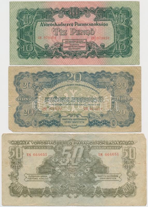 1944. 1P-100P (10x) "A Vörös Hadsereg Parancsnoksága" T:III,...