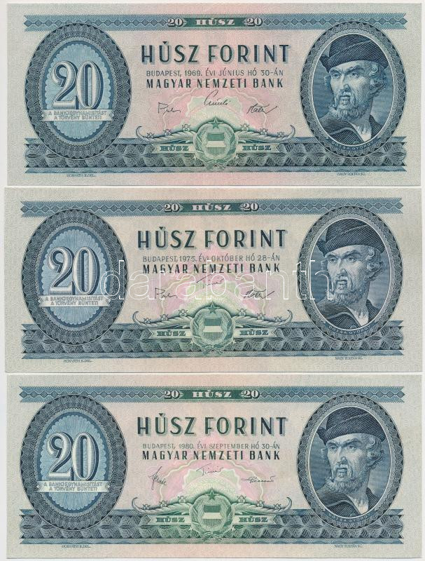 1969-1980. 20Ft (3x) T:II,III mindegyiknél szép, ropogós papír