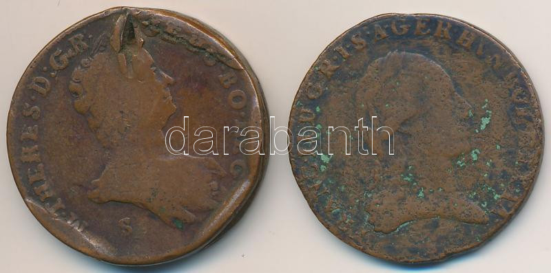 1763S PH-KM Poltura Cu "Mária Terézia" + 1800G 3kr Cu "I. Ferenc" T:3 ph., ü.