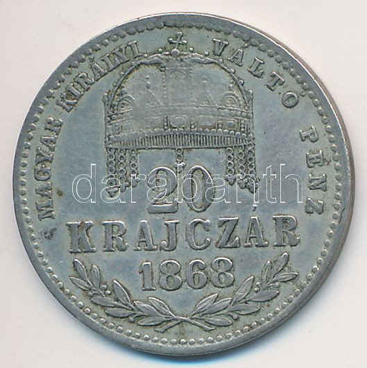 https://www.darabanth.com/en/265-Online-auction/265.0/Numismatics/Hungarian-coins-and-coins-with-Hungarian-mint-marks~400008/1868KB-20Kr-Ag-Magyar-Kiralyi-Valto-Penz-T2-~II1322672