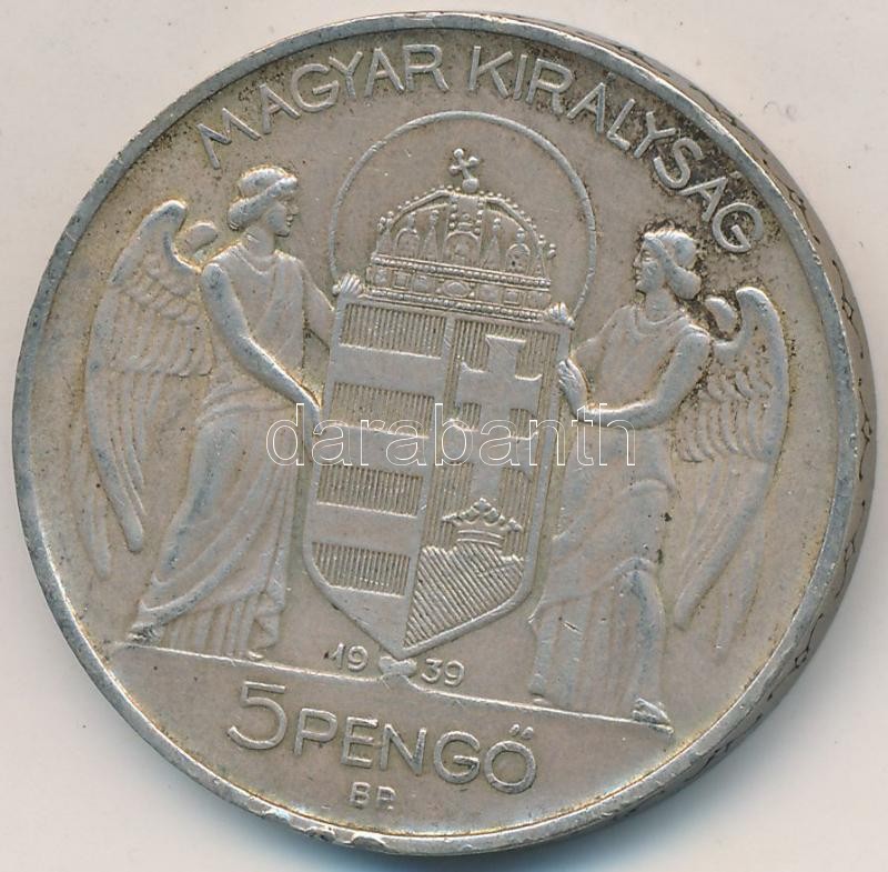 https://www.darabanth.com/en/265-Online-auction/265.0/Numismatics/Hungarian-coins-and-coins-with-Hungarian-mint-marks~400008/1939-5P-Ag-Horthy-balra-T2-ph-patina---Adamo-P82~II1325544