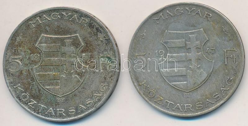 https://www.darabanth.com/en/265-Online-auction/265.0/Numismatics/Hungarian-coins-and-coins-with-Hungarian-mint-marks~400008/1947-5Ft-Ag-Kossuth-2x-T2-3-patina~II1307994