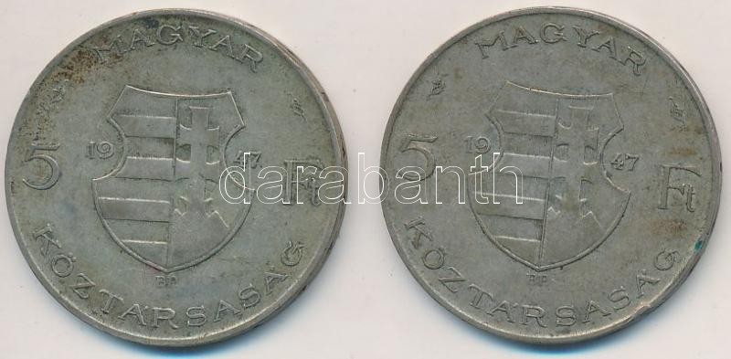 https://www.darabanth.com/en/265-Online-auction/265.0/Numismatics/Hungarian-coins-and-coins-with-Hungarian-mint-marks~400008/1947-5Ft-Ag-Kossuth-2x-T2-3-patina~II1307996