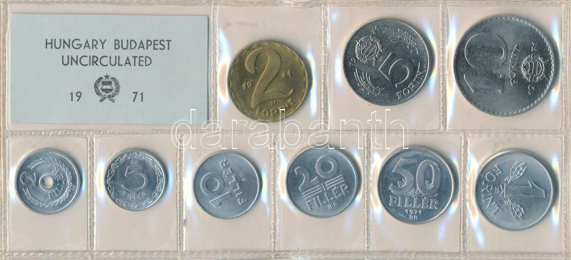 https://www.darabanth.com/en/265-Online-auction/265.0/Numismatics/Hungarian-coins-and-coins-with-Hungarian-mint-marks~400008/1971-2f-10Ft-9db-klf-ermes-forgalmi-sor-foliatokban-T1~II1321930