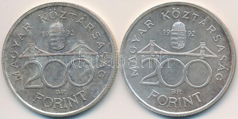 1992. 200Ft Ag "MNB" (2x) T:2 patina