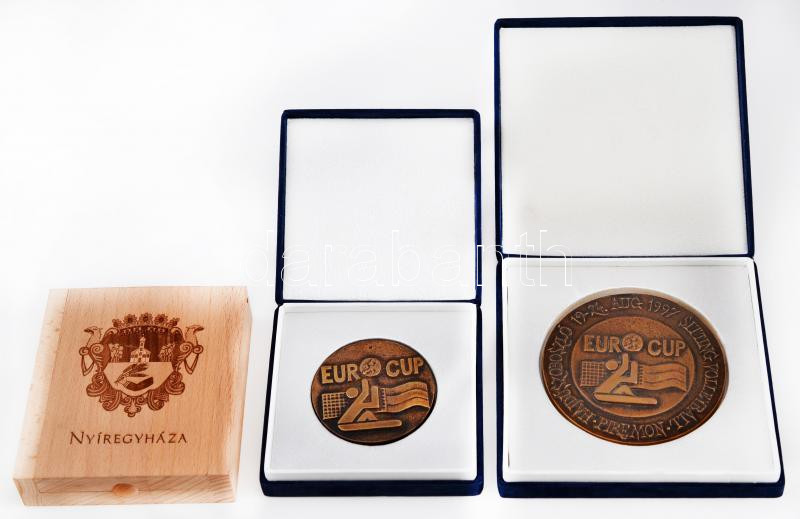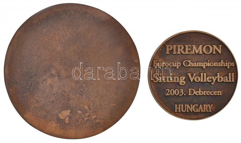 Description: 1997. "Hajdúszoboszló 1997. augusztus 19-24. - Ülőröplabda Erópa Kupa - Piremon" Br emlékérem eredeti tokban, angol nyelven (90,5mm) + 2003. "Piremon - Ülőröplabda Európa Kupa Bajnokság 2003. Debrecen" Br emlékérem tokban, angol nyelven (60mm) + 2008. "XX. Európa Kupa - Nyíregyháza" Br emlékérem fa tokban, angol nyelven (70mm) T:1
