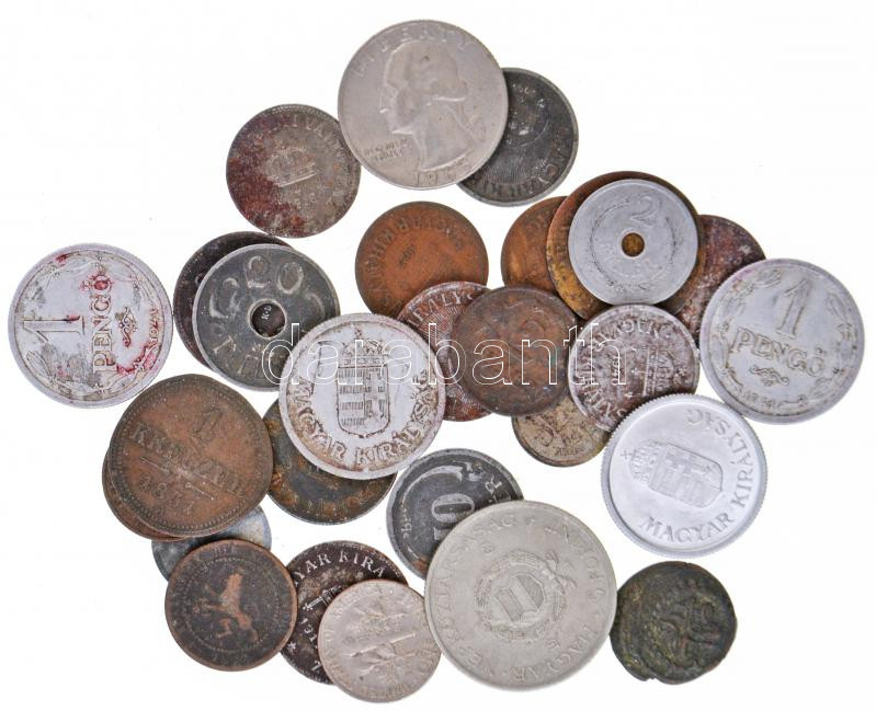 Vegyes: 29db vegyes magyar és külföldi fémpénz és zseton, közte főleg ...
