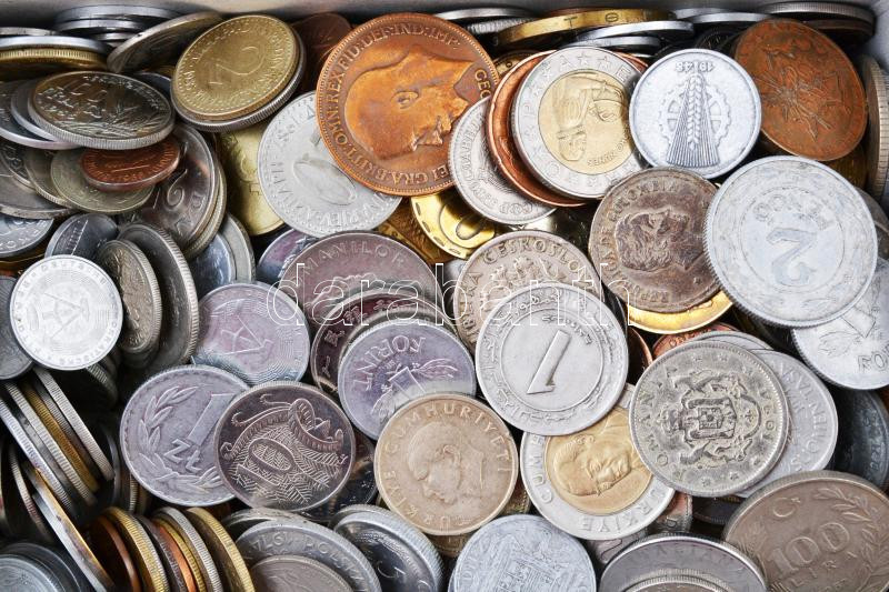 Vegyes magyar és külföldi fémpénz tétel 66 ország pénzeivel 2Kg-os súl...