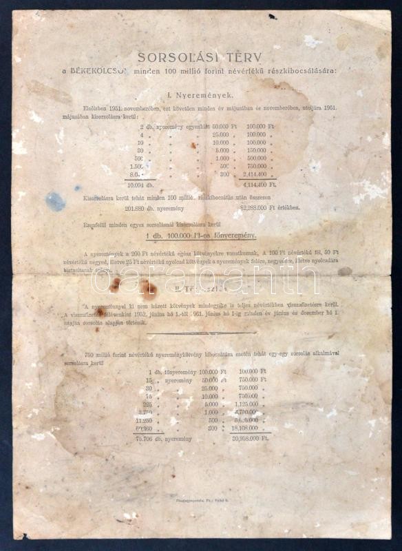 1950. "Békekölcsön" Magyar Népköztársaság nyereménykölcsöne ...