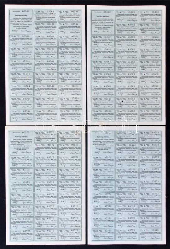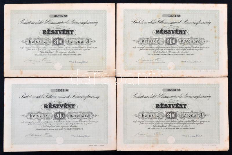Balatonfüred 1921. "Balatonvidéki Villamosművek Részvénytársaság" részvénye 200K-ról teljes szelvényívekkel (4x), sorszámkövető és közeli sorszámú párok T:II penészfoltok
