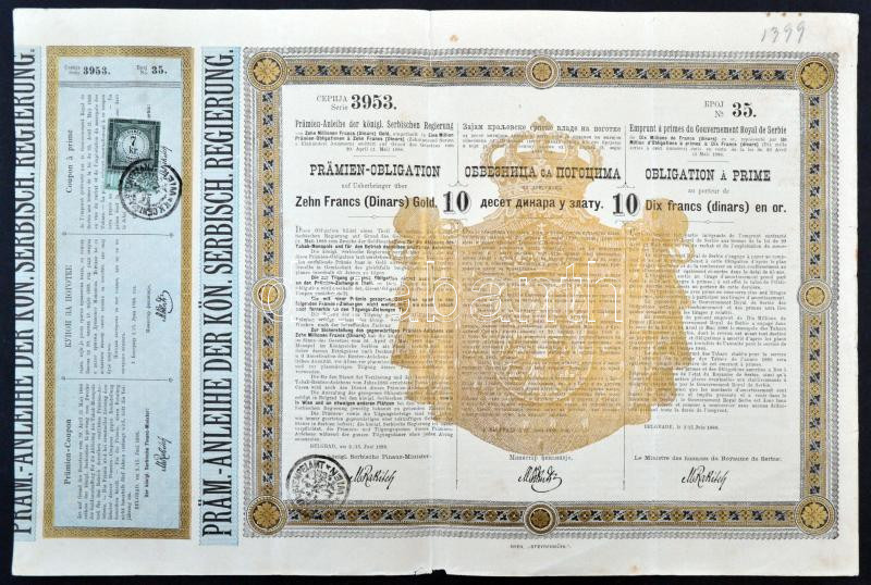 https://www.darabanth.com/en/265-Online-auction/265.0/Numismatics/Shares-and-Tickets~400005/Szerbia-Belgrad-1889-Premium-Kotveny-10-arany-denarrol-osztrak-felulbelyegzessel-TI~II1248531