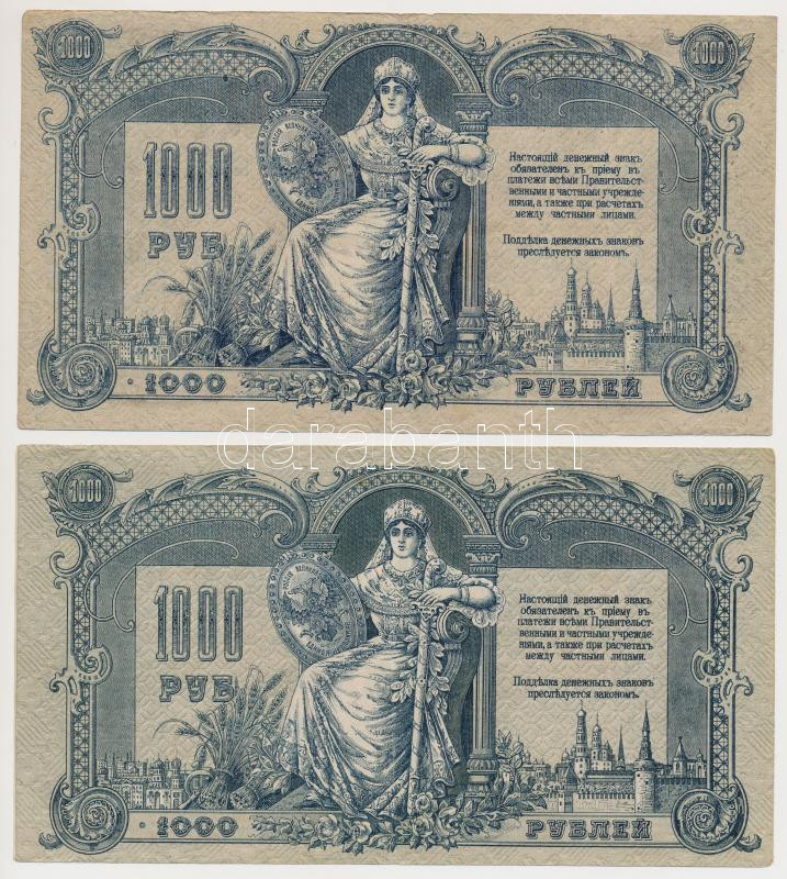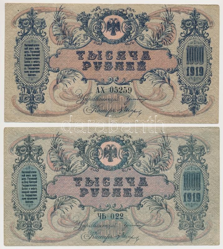 Orosz Polgárháború / Dél-Oroszország / Gyenyikin és Vrangel Hadserege ... https://www.darabanth.com/en/265-Online-auction/265.0/Numismatics/Worldwide-banknotes~400012/Orosz-Polgarhaboru-Del-Oroszorszag-Gyenyikin-es-Vrangel-Hadserege-1919-1000R-2x-az-egyi~II1324005