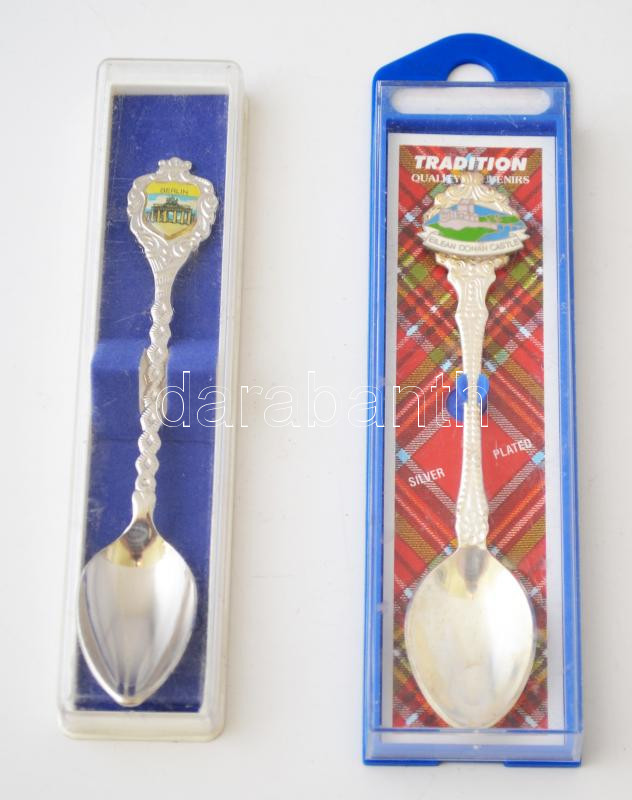 2 db ezüstözött emlék kanál ( Berlin, Eilean), h:11 cm