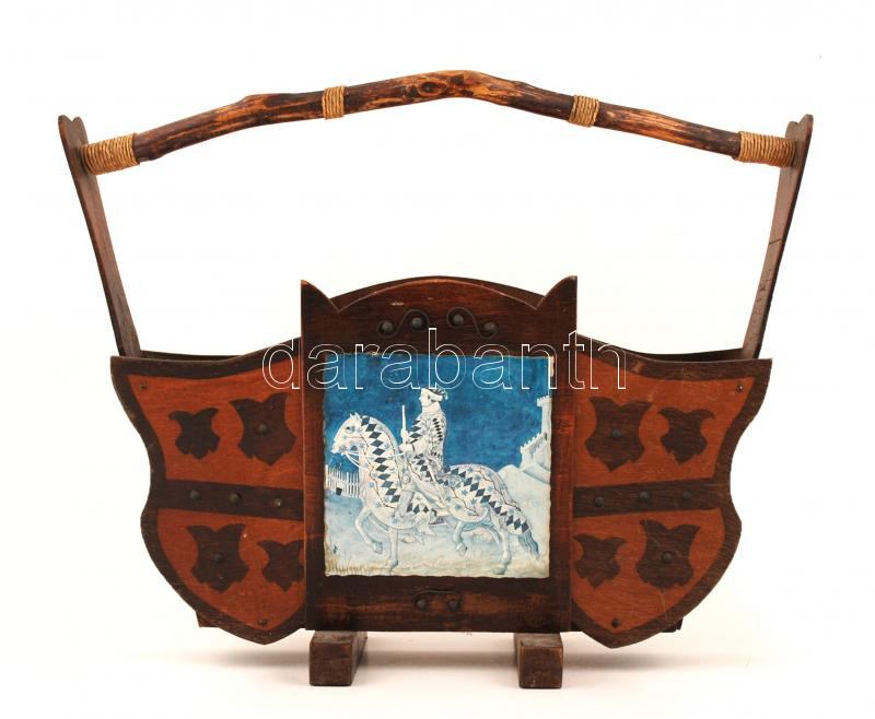 Újságtartó, fa, nyomattal, 52×59 cm