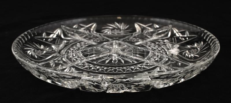 Ólomkristály asztali kínálótál, metszett, hibátlan, d: 30 cm