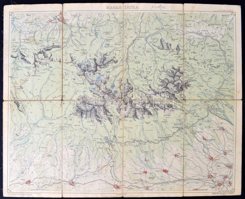 1914 A Magas Tátra turistatérképe vászonra kasírozva. dr. Vigyázó Ján...